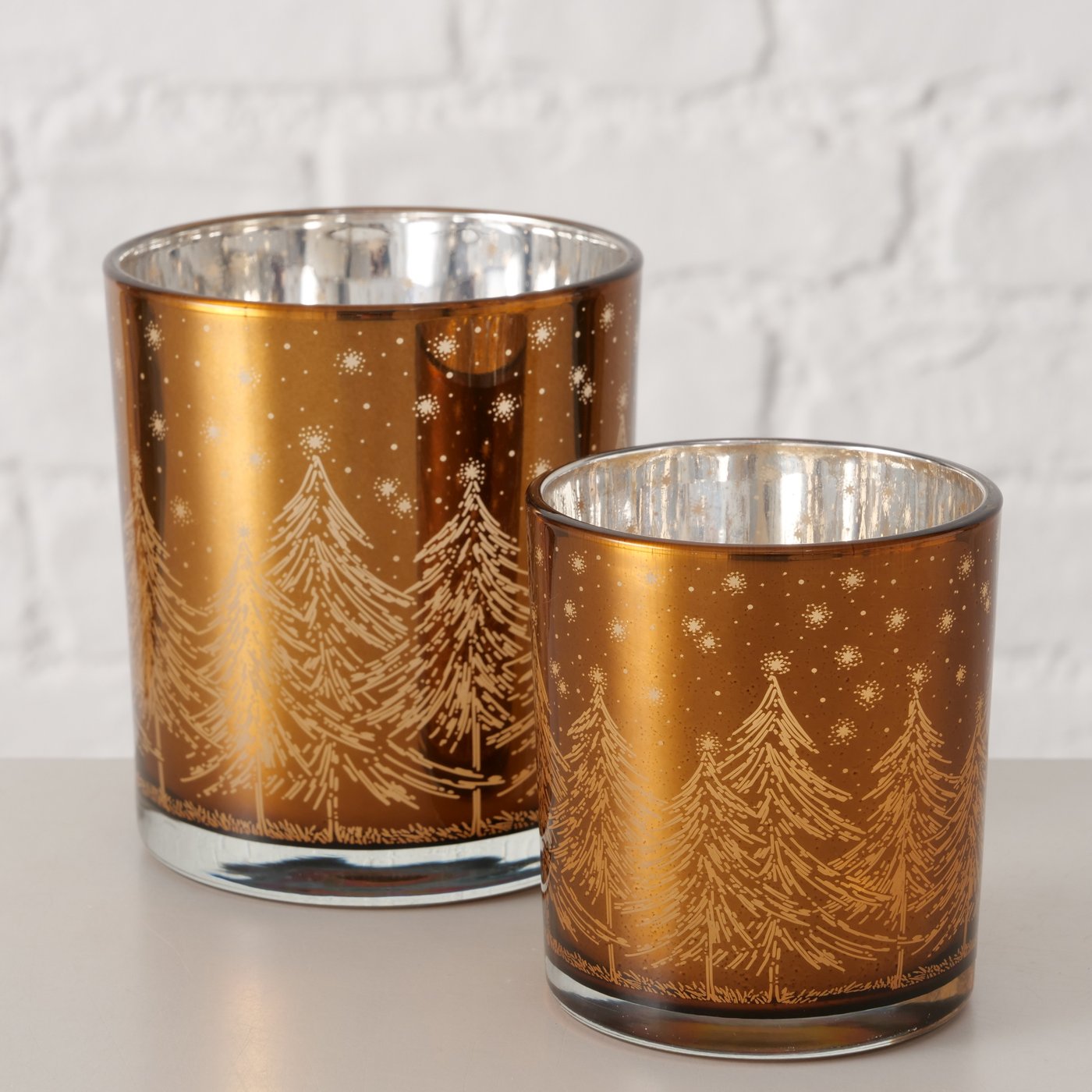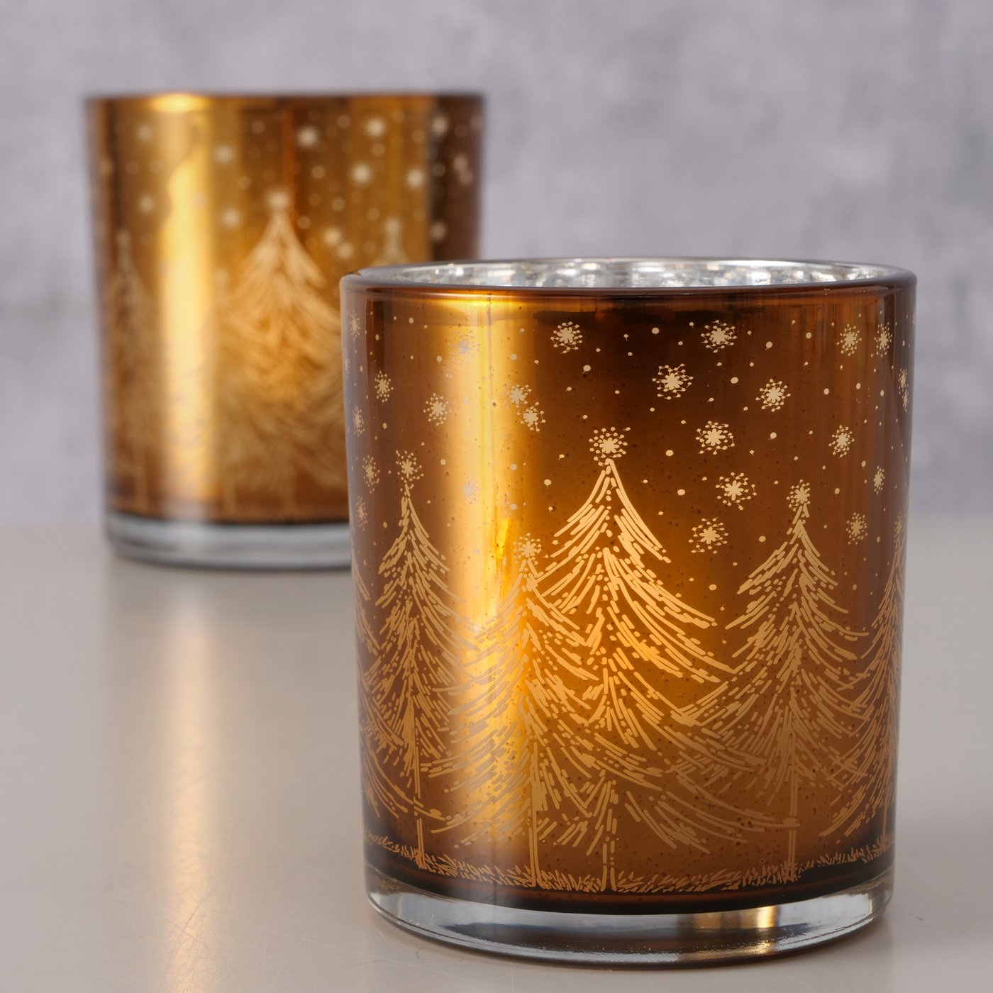 Amber fyrfadsstager m. vintermotiv