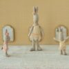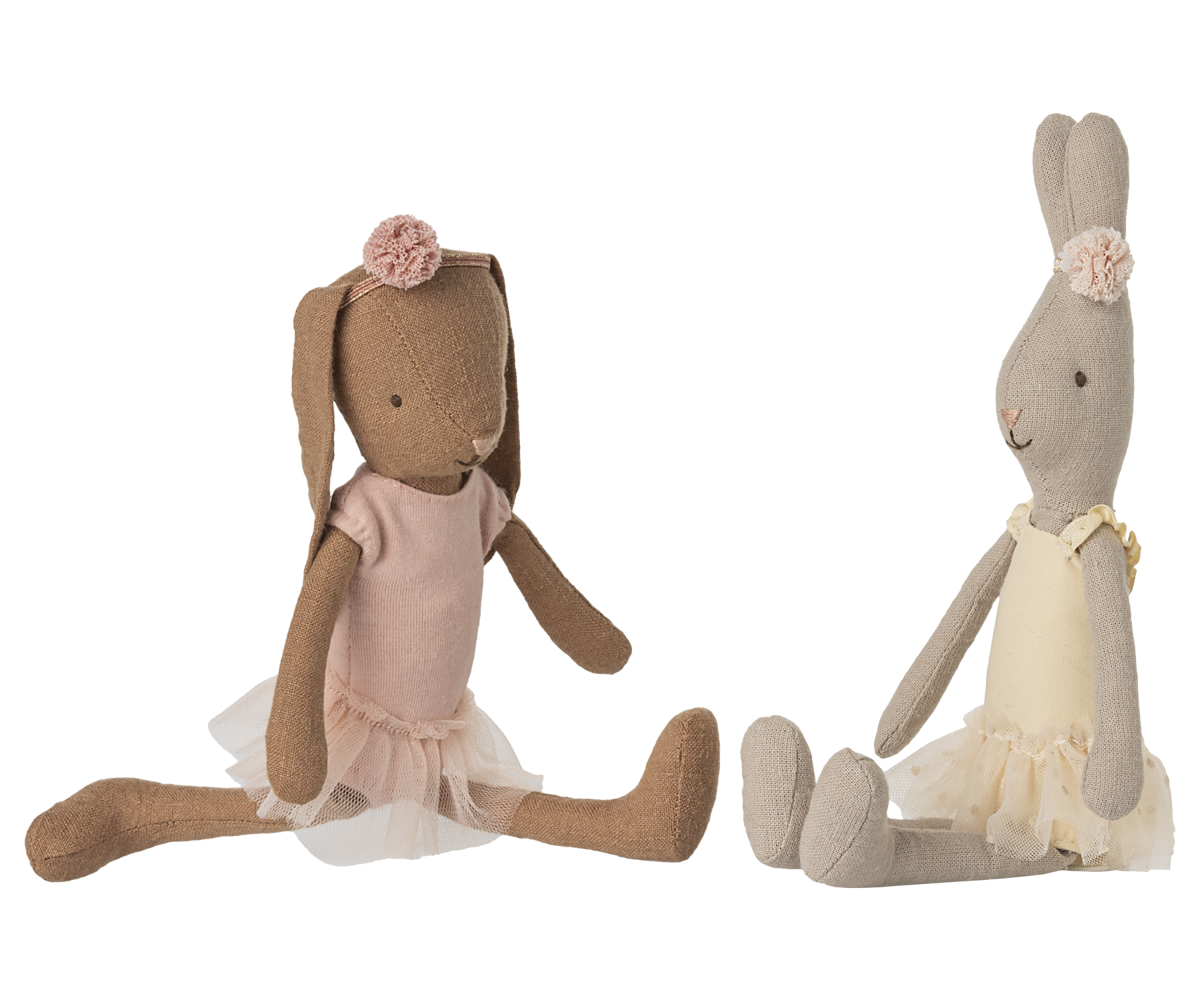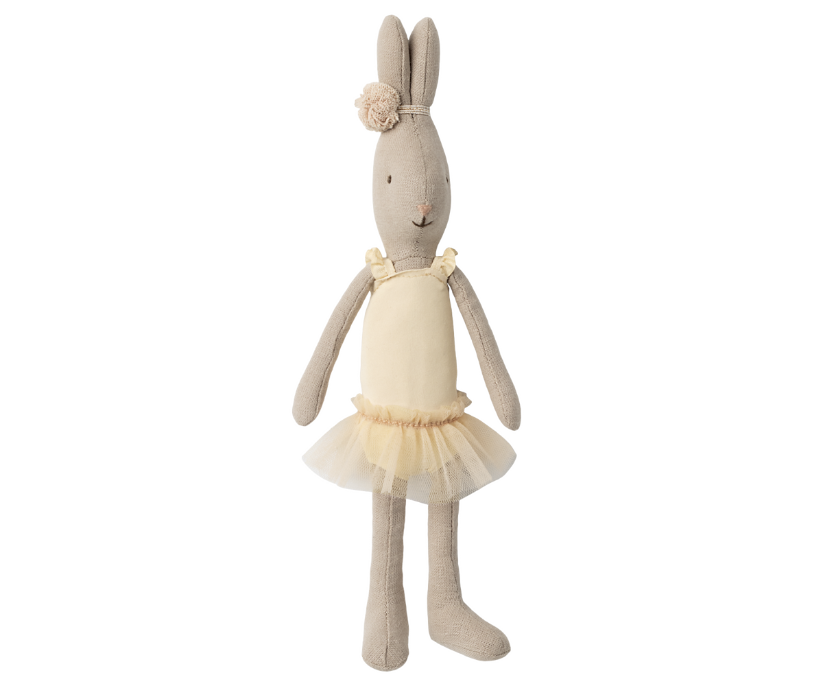 Den velkendte Maileg mikro hare klædt som balletdanser. Den kommer i balletdragt og tylskørt samt en lille dekoration omkring de strittende ører.