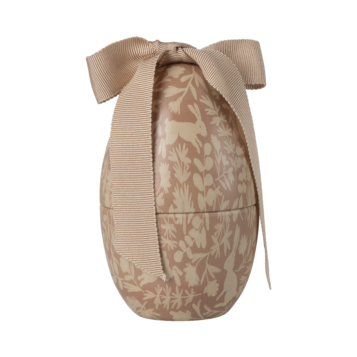 Metal påskeæg med et smukt print. Tag et ekstra kig på printet og se om du kan få øje på de forskellige dyr. Ægget kommer med en stor blød sløjfe på toppen, som giver ægget et eksklusivt look.