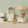 Alle har brug for lidt tid i skyggen på en solskinsdag på stranden. Denne parasol er perfekt i størrelsen til hele musefamilien og vil inspirere til nye historier fra en dejlig stranddag.